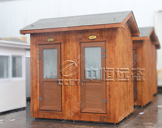 防腐木尖顶移动厕所